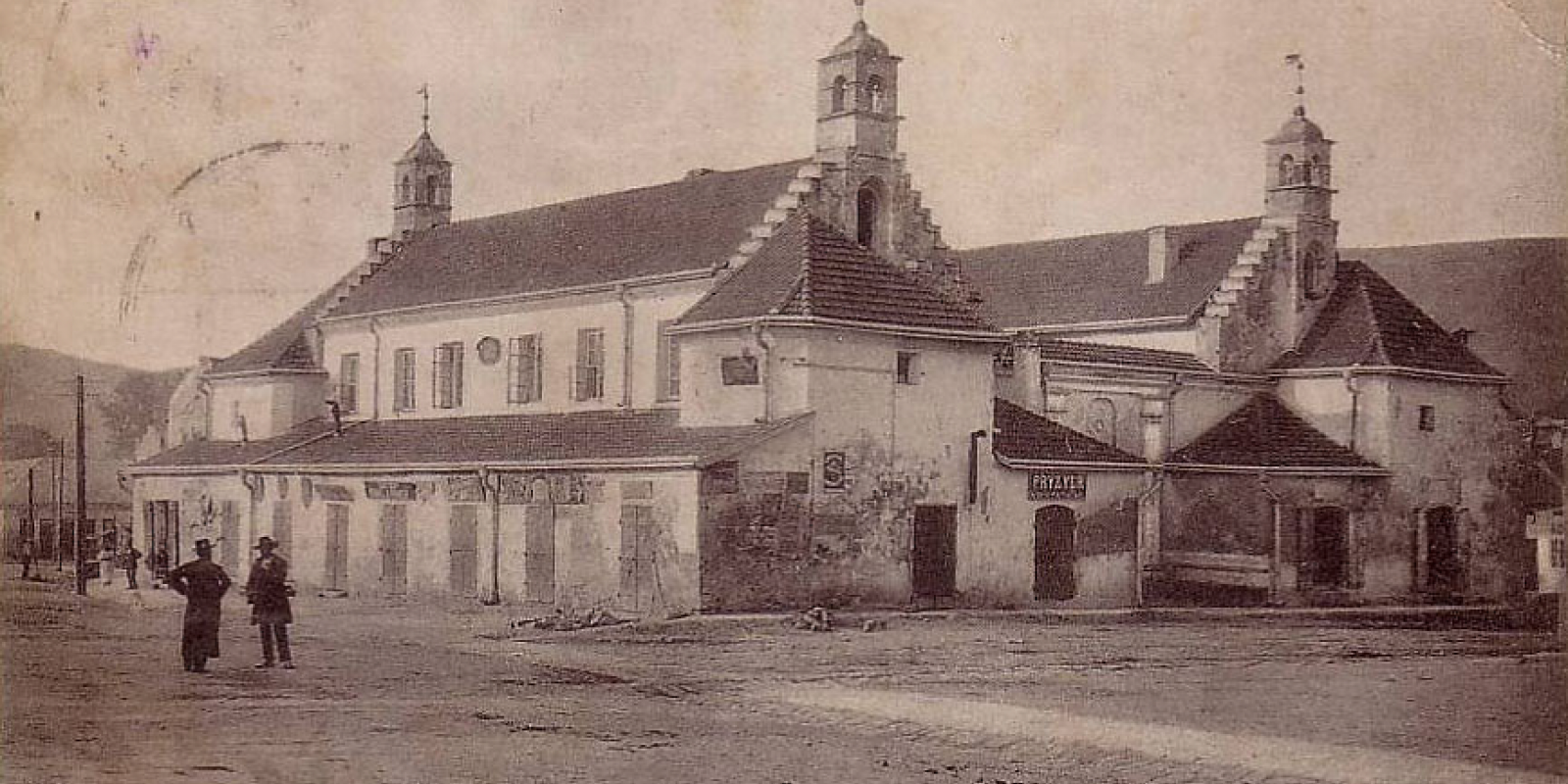 «Одной из самых трагических событий советского периода существования города стало уничтожение его административного центра - ратуши, построенной в середине XVIII в. Здание было прямоугольным в плане (бывшая охотничья крепость, построенная по проекту барона Дицке), имела два этажа и вообще состояла из 2-х корпусов, которые делились двором. На ее четырех углах поднимались 4-е оригинальные сиґнатуркы со шпилями. Первый этаж занимали многочисленные магазины и склады. А другие помещения использовал магистрат Залещиков».
