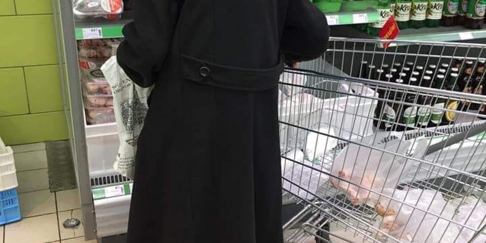 Так, жінка чисто вбрана, акуратно зачесана. Після походу в місцевий супермаркет на свою пенсію вона придбала лише три цукерки, три картоплини, половину хлібини та декілька курячих лапок, напевно вдома має кота чи собаку.