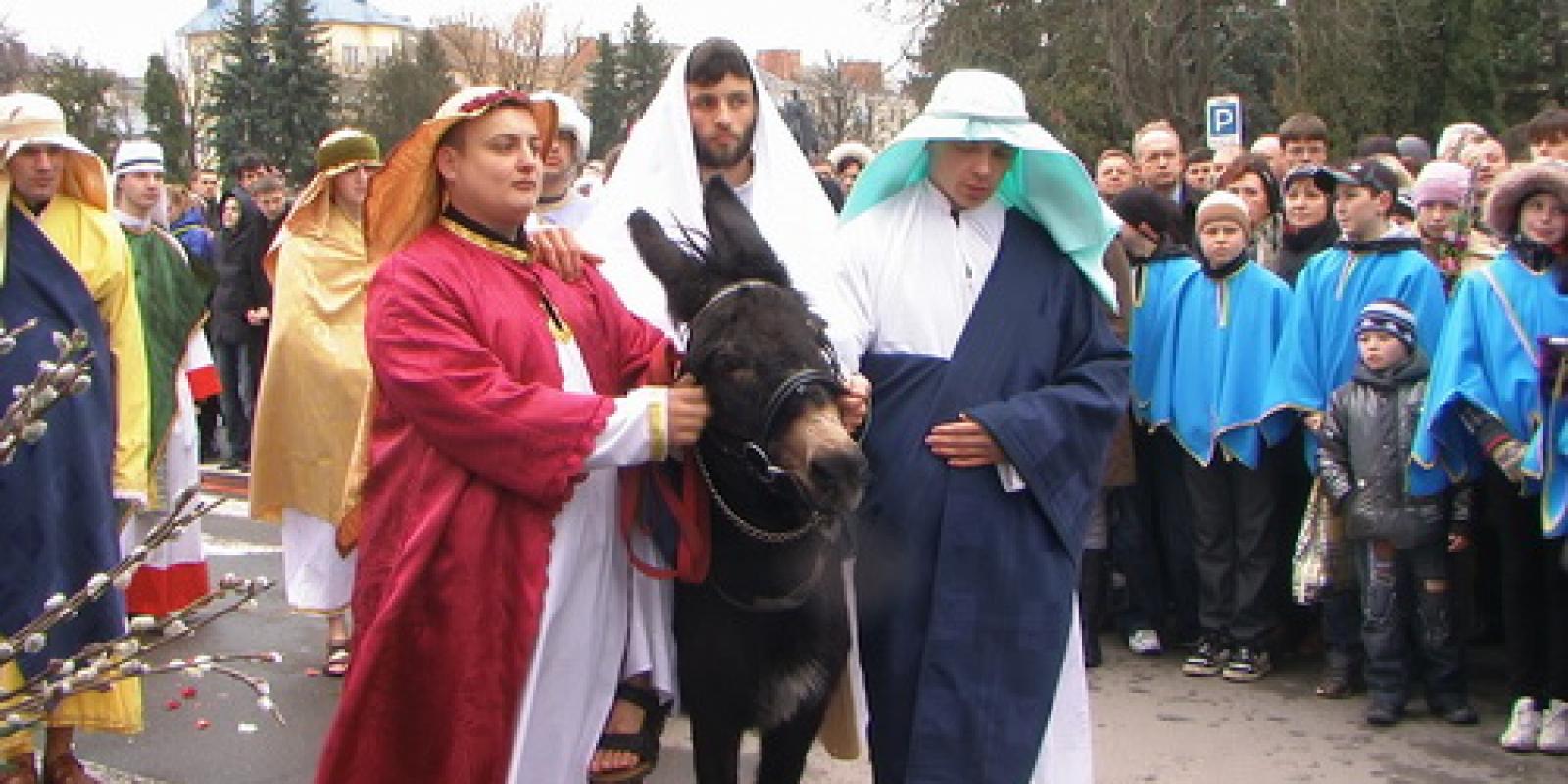 Під час святкової ходи, окрім в'їзду Ісуса до Єрусалиму, розігруватимуть сценки із Археєм та міняйлами.