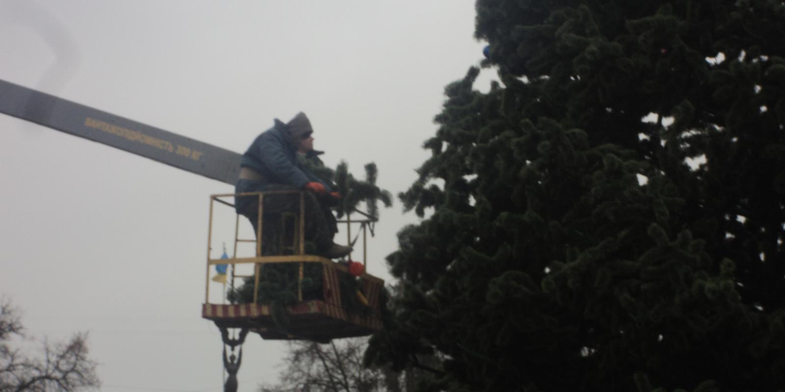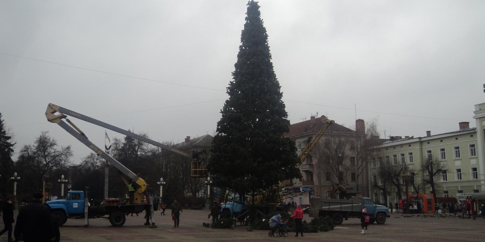 Ялинку на Театральному майдані закінчують монтувати. Вогні на ялинці планують засвітити 19 грудня. Як повідомив інтернет газеті "Місто" начальник управління ЖКГ, цьогоріч зелену красуню прикрасять іграшками на патріотичну тематику та додатковою ілюмінацією.