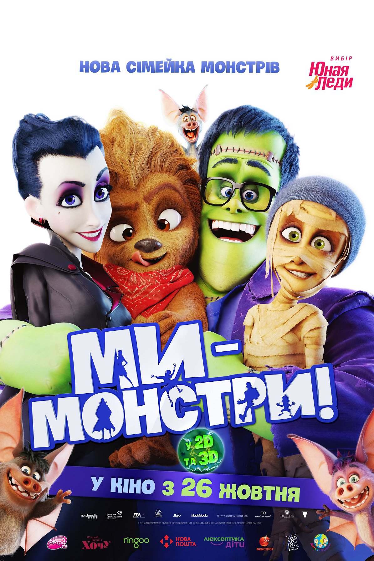 26 жовтня на екранах кінотеатрів з’явиться ще одна прем’єра, цього разу для юних глядачів – сімейна анімаційна комедійна стрічка «Ми – монстри» режисера Хольгера Таппе. Сценарій фільму написаний Давідом Сафером та Катаріною Джанк на основі роману-бестселлера Девіда Сафера «Ми – монстри» («Нарру Family»), опублікованого у 2011 році. Отож, жила собі, здавалося б, звичайна сім’я Вішбон, мама Емма (голос акторки Емілі Уотсон), тато Френк (голос Ніка Фроста), дочка Фей (голос Джессіки Браун Фіндлі) та син Макс (голос Етона Роуса), але були вони насправді дуже нещасливі: постійно сварилися та сперечалися. Для того щоб якось згуртувати усіх, мама Емма вирішує повести родину на маскарадну вечірку до тематичного парку. Але для цього їм усім знадобляться відповідні костюми монстрів. Вирішено, мама одягнеться вампіром, тато – Франкенштейном, Фей буде мумією, а Макс – вовкулакою. І осі такі-сякі костюми готові, а святкового настрою немає. В такому не найкращому вигляді і в поганому гуморі сім’я вирушає на святкування. Саме тоді трапляється дещо неймовірне: в результаті невдалого розіграшу з лялькою, вона раптово стає злою чаклункою, яка перетворює кожного з них на справжнього монстра. Тепер це вже не костюми та маски – мама стала вампіром, тато велетенським Франкенштейном, Фей перетворилася на єгипетську мумію, а Макс на кумедного вовкулаку. Тепер вони повинні відкинути усі свої суперечки та об’єднатися разом у боротьбі проти монстрів реального світу, зміни своє мислення та ставлення до усього, щоб довести, що навіть вампір, мумія, перевертень та Франкенштейн можуть в решті решт стати однією великою та щасливою сім’єю. Чи вдасться Вішбонам зроби це?