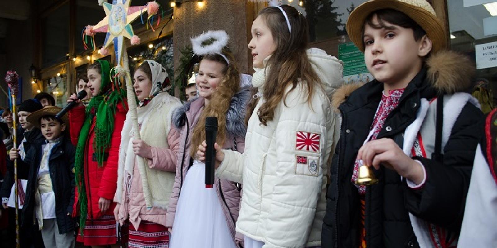Урочисте дійство почалося ще у вестибюлі й на сходах музею. Лунали різдвяні співи, віншування та колядки. Співали їх учасники вертепу, котрі зустрічали відвідувачів музею.