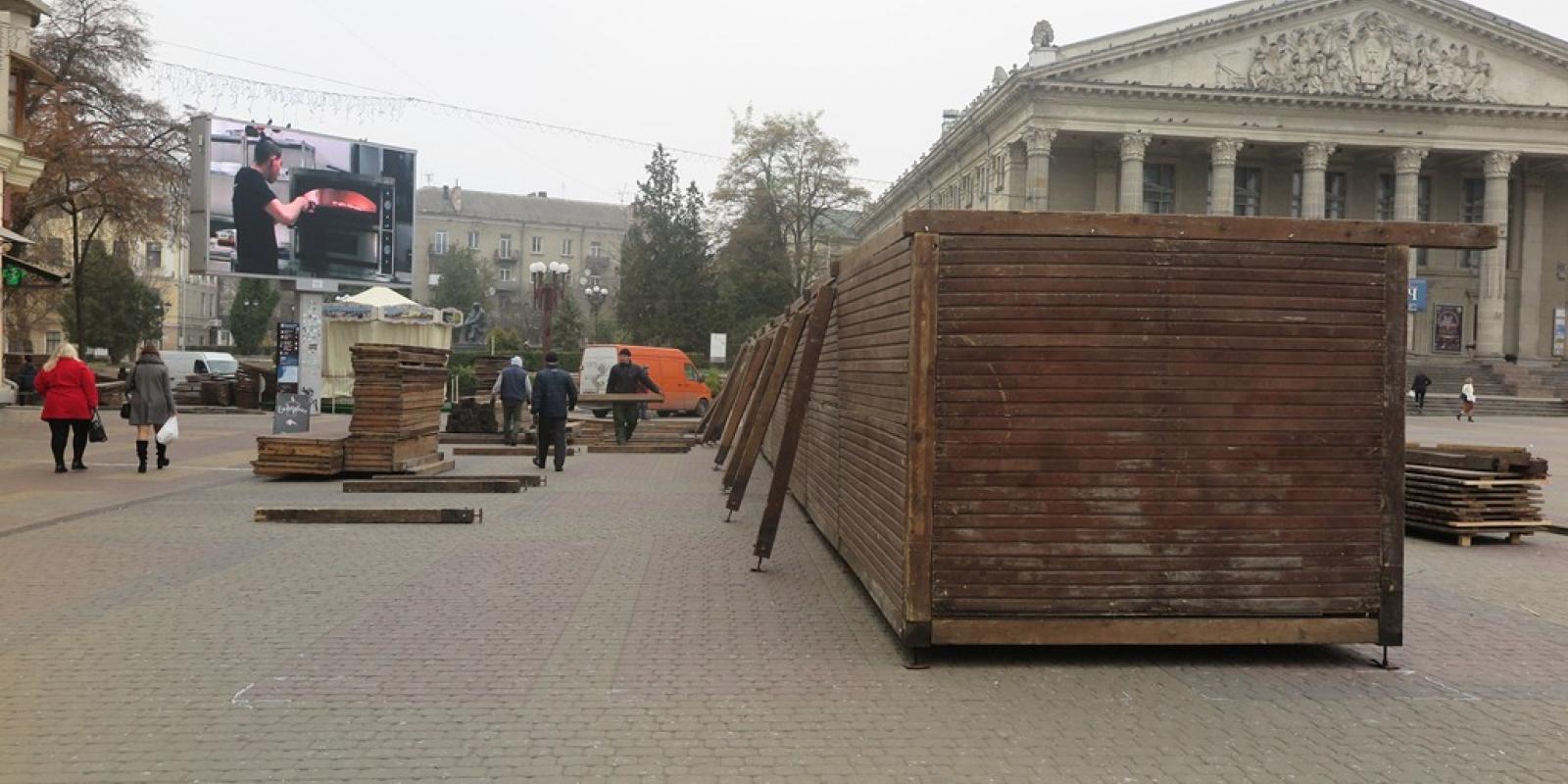 Зараз видно, що на вулиці Грушевського лежать будівельні матеріали з яких поступово виростають дерев’яні МАФи. А на Театральному (біля театру) вони вже стоять. Тут довершують встaновлення близько десяти дерев’яних локaції. У період новорічно-різдвяних свят у будиночкaх продaвaтимуть різномaнітні смaколики тa речі. Щоправда різниця з минулим роком буде й в тому, що новорічна локація буде розташована і на Єлісейських полях, що зa готелем «Тернопіль».